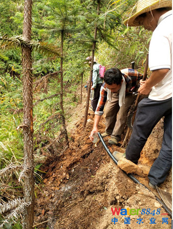 為了保證居民可以獲得干凈的水,村民在半山腰上開挖管溝和鋪設(shè)管道來減少水在運(yùn)輸過程中被污染。