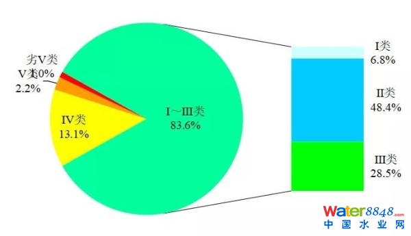 1-11月,3641個國家地表水考核斷面中,水質(zhì)優(yōu)良(Ⅰ~Ⅲ類)斷面比例為83.6%,同比上升1.7個百分點;劣Ⅴ類斷面比例為1.0%,同比下降0.8個百分點。主要污染指標(biāo)為化學(xué)需氧量、高錳酸鹽指數(shù)和總磷。