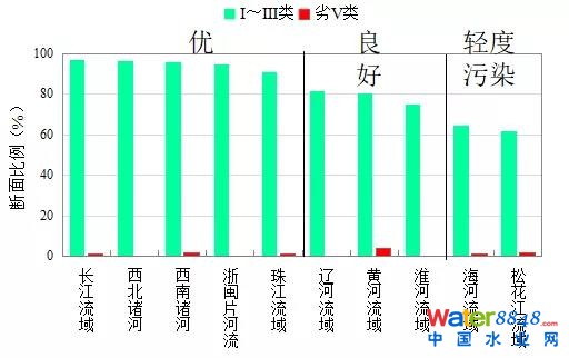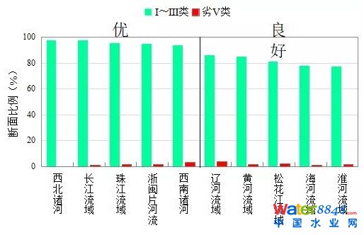 1-11月,長江、黃河、珠江、松花江、淮河、海河、遼河等七大流域及西北諸河、西南諸河和浙閩片河流水質(zhì)優(yōu)良(Ⅰ~Ⅲ類)斷面比例為85.8%,同比上升1.8個百分點;劣Ⅴ類斷面比例為0.8%,同比下降0.9個百分點。主要污染指標(biāo)為化學(xué)需氧量、高錳酸鹽指數(shù)和總磷。其中,長江流域、西北和西南諸河、浙閩片河流和珠江流域水質(zhì)為優(yōu);遼河、黃河和淮河流域水質(zhì)良好;松花江和海河流域為輕度污染。
