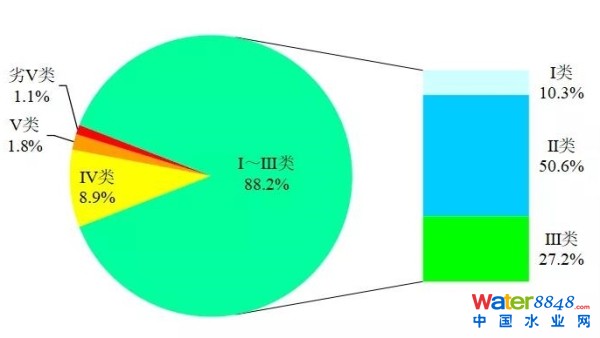 圖2 1-11月全國地表水水質(zhì)類別比例
