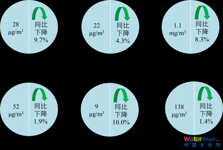 1-11月,全國339個地級及以上城市平均優(yōu)良天數(shù)比例為87.6%,同比下降0.3個百分點;PM2.5平均濃度為28微克/立方米,同比下降9.7%;PM10平均濃度為52微克/立方米,同比下降1.9%;O3平均濃度為138微克/立方米,同比下降1.4%;SO2平均濃度為9微克/立方米,同比下降10.0%;NO2平均濃度為22微克/立方米,同比下降4.3%;CO平均濃度為1.1毫克/立方米,同比下降8.3%。