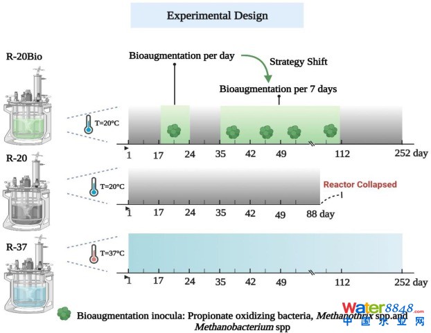 針對以上問題,中國科學(xué)院廣州能源研究所生物質(zhì)能生化轉(zhuǎn)化研究室生物燃氣課題組探究了低溫抑制厭氧發(fā)酵的機制;在此基礎(chǔ)上,利用經(jīng)長期馴化獲得的產(chǎn)甲烷菌系對低溫連續(xù)厭氧發(fā)酵進行生物強化,評價生物強化效果;從微生物群落組成與宏基因組學(xué)層面揭示了生物強化機制。相關(guān)研究成果以Effect of bioaugmentation on psychrotrophic anaerobic digestion: Bioreactor performance, microbial community, and cellular metabolic response(《生物強化對低溫厭氧消化的影響:生物反應(yīng)器性能、微生物群落及細胞代謝的響應(yīng)》)為題,發(fā)表在Chemical Engineering Journal上。