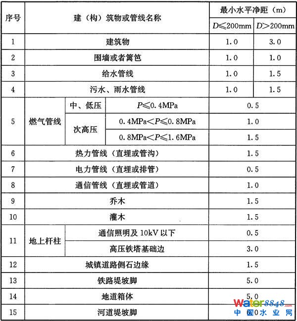表A 再生水管道與其他管線及建(構(gòu))筑物之間的最小水平凈距(m)