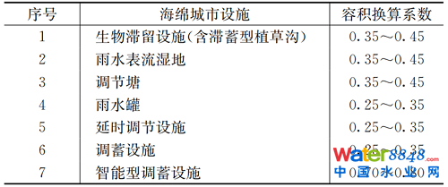 表7 海綿城市設(shè)施的容積換算系數(shù)范圍