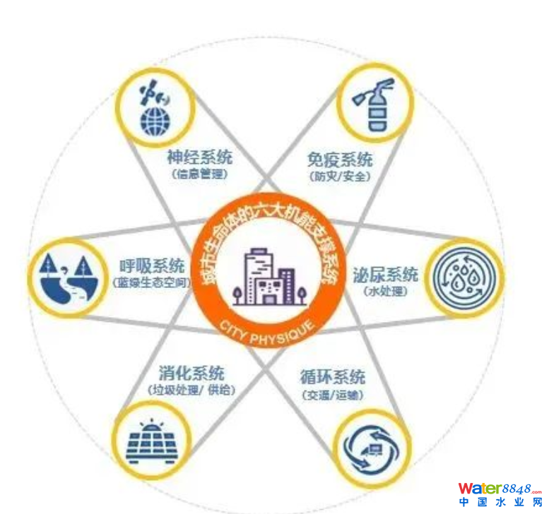 理解“城市生命體”的機(jī)能,還需要認(rèn)識(shí)“城市生命體”的六大機(jī)能支撐系統(tǒng):