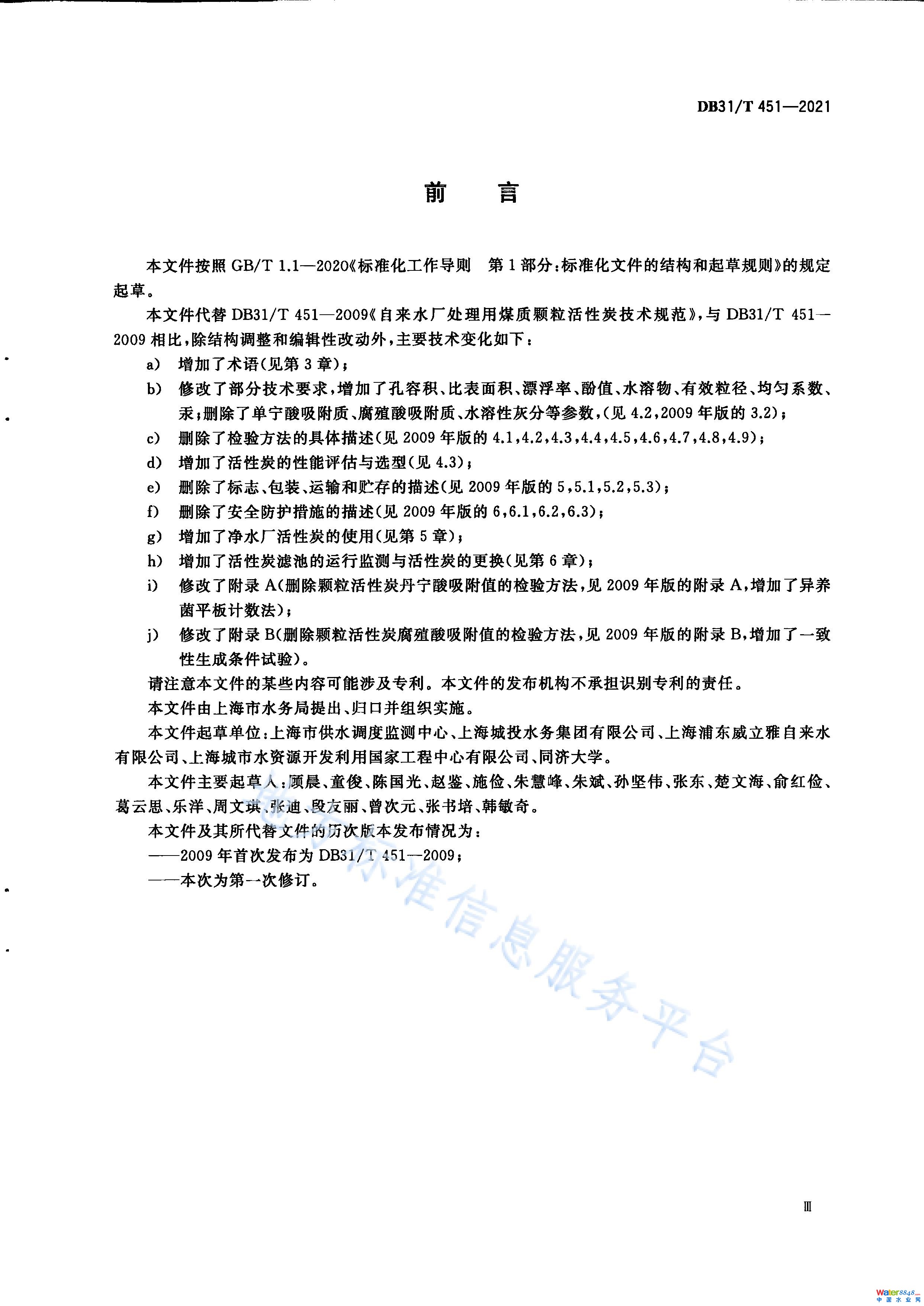 上海市第一批深度處理的凈水廠使用活性炭已有10多年時(shí)間,活性炭的效能已經(jīng)不能完全滿足水質(zhì)要求。有部分已經(jīng)更換,還有部分仍在使用,需要對(duì)其效能進(jìn)行評(píng)估。新建凈水廠的活性炭選擇、使用也需要依據(jù)。但國(guó)內(nèi)尚未有水處理工藝過(guò)程中的煤質(zhì)顆;钚蕴康氖褂眉捌涓鼡Q的標(biāo)準(zhǔn)。本次對(duì)DB31/T 451 2009《自來(lái)水處理用煤質(zhì)顆粒活性炭技術(shù)規(guī)范》的修訂.重點(diǎn)考慮了凈水廠用煤質(zhì)顆;钚蕴窟x擇、使用及更換等技術(shù)要素,也可為進(jìn)一步提升本市供水水質(zhì),確保水質(zhì)穩(wěn)定達(dá)標(biāo)提供必要的技術(shù)支撐。