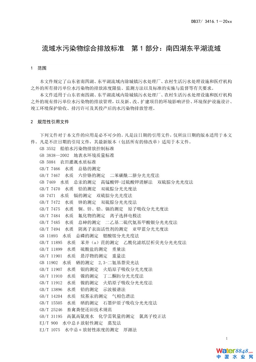 關(guān)于公開征求《流域水污染物綜合排放標準 第1部分:南四湖東平湖流域(征求意見稿)》等5項標準意見的函