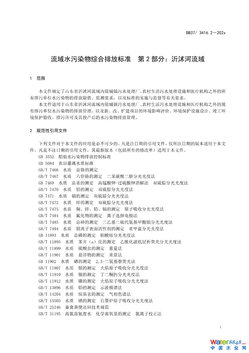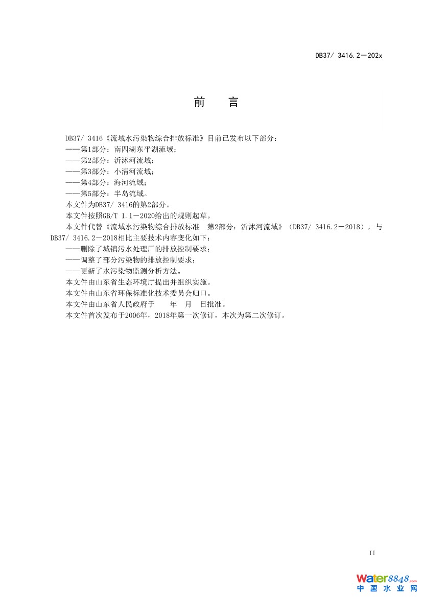 2.《流域水污染物綜合排放標準第2部分:沂沭河流域(征求意見稿)》(修訂DB37/ 3416.2)文本