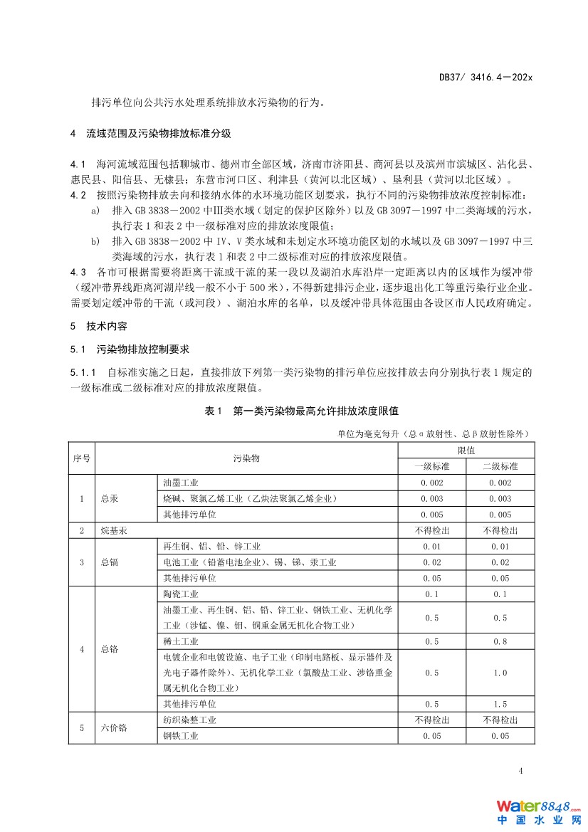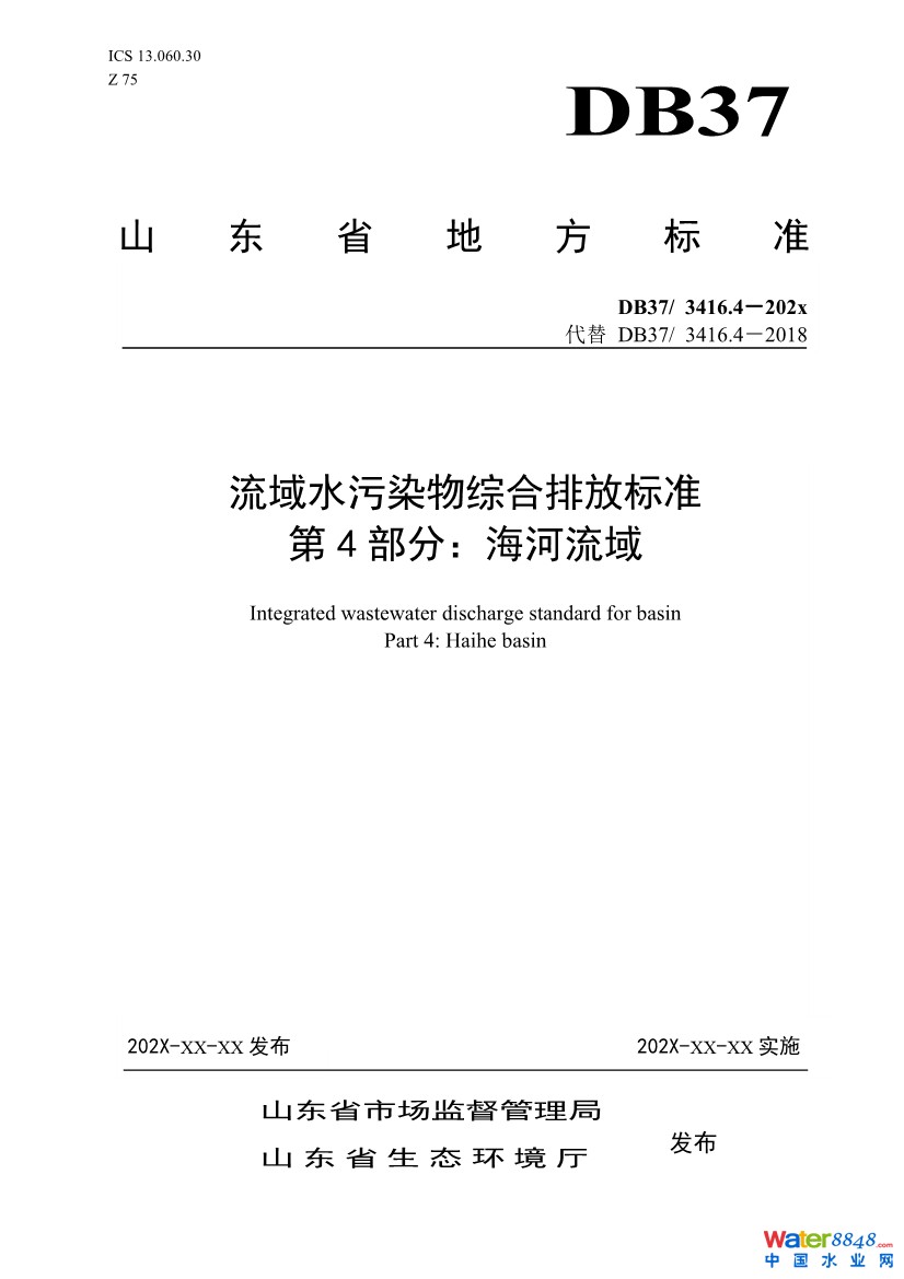 4.《流域水污染物綜合排放標準第4部分:海河流域(征求意見稿)》(修訂DB37/ 3416.4)文本