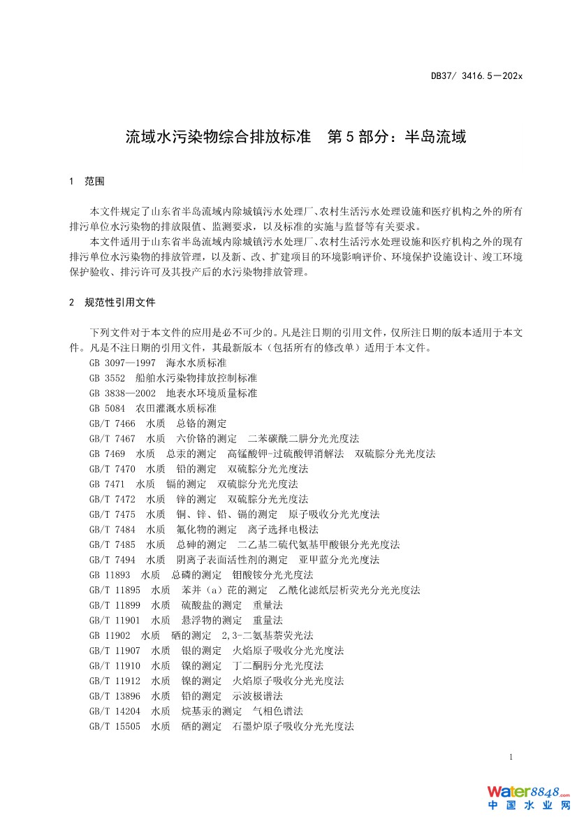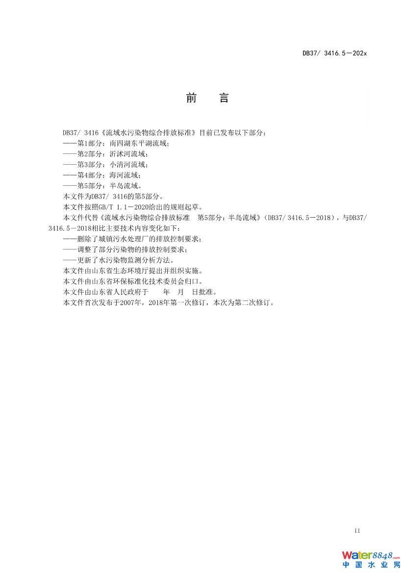5.《流域水污染物綜合排放標準第5部分:半島流域(征求意見稿)》(修訂DB37/ 3416.5)文本