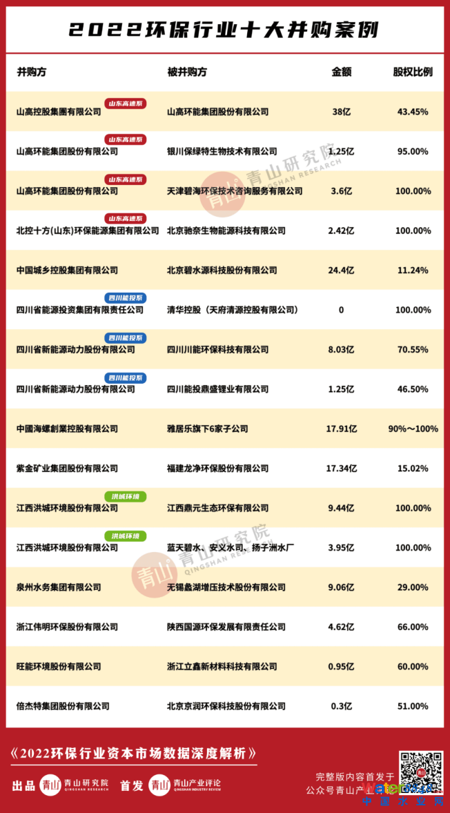 附表:2022環(huán)保行業(yè)十大并購案例一覽