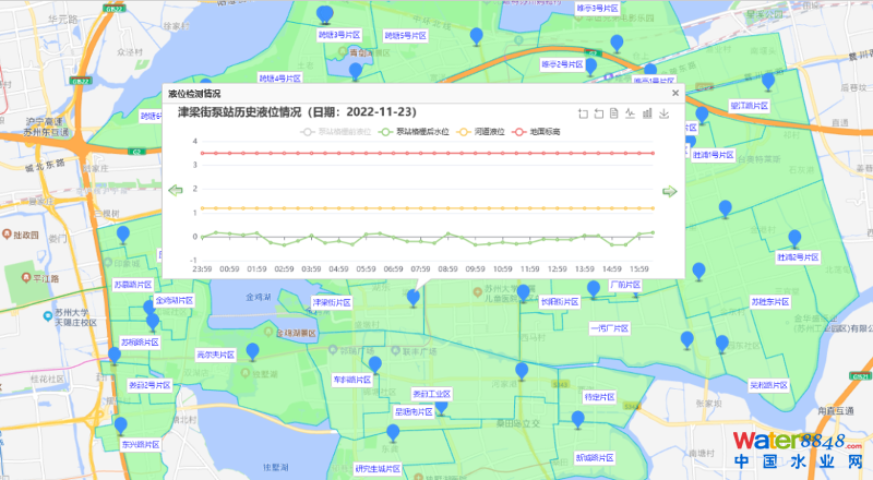 污水管網(wǎng)低水位片區(qū)綜合展示平臺(tái)是服務(wù)于低水位運(yùn)行的管理平臺(tái)。該平臺(tái)展示了各污水泵站覆蓋片區(qū)的實(shí)時(shí)狀態(tài),以及各污水泵站在不同時(shí)刻的格柵前液位、格柵后液位、河道液位、地面標(biāo)高等監(jiān)測(cè)數(shù)據(jù)信息,同時(shí)也支持各泵站液位監(jiān)測(cè)數(shù)據(jù)的歷史數(shù)據(jù)曲線追溯和分析,確保“污水不入河,河水不進(jìn)管”,提高了對(duì)市政污水管網(wǎng)的運(yùn)行調(diào)度水平,為改善園區(qū)水環(huán)境提供了有效的信息化手段。