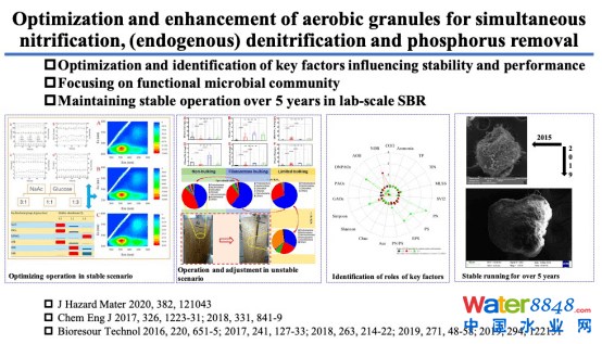 [1]He, Qiulai*; Song, Jianyang; Zhang, Wei; Gao, Shuxian; Wang, Hongyu*; Yu, Jian (2020) Enhanced simultaneous nitrification, denitrification and phosphorus removal through mixed carbon source by aerobic granular sludge. J Hazard Mater 382, 121043.https://doi.org/10.1016/j.jhazmat.2019.121043
