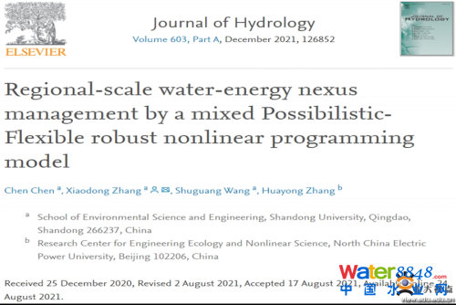 近日,環(huán)境學(xué)院張曉東教授團(tuán)隊(duì)在Journal of Hydrology上發(fā)表了以“Regional-Scale Water-Energy Nexus Management by a Mixed Possibilistic-Flexible Robust Nonlinear Programming Model”為題的研究論文。環(huán)境學(xué)院2018級(jí)碩士生陳琛為第一作者,張曉東教授為通訊作者。山東大學(xué)是論文的第一作者單位和唯一通訊單位。