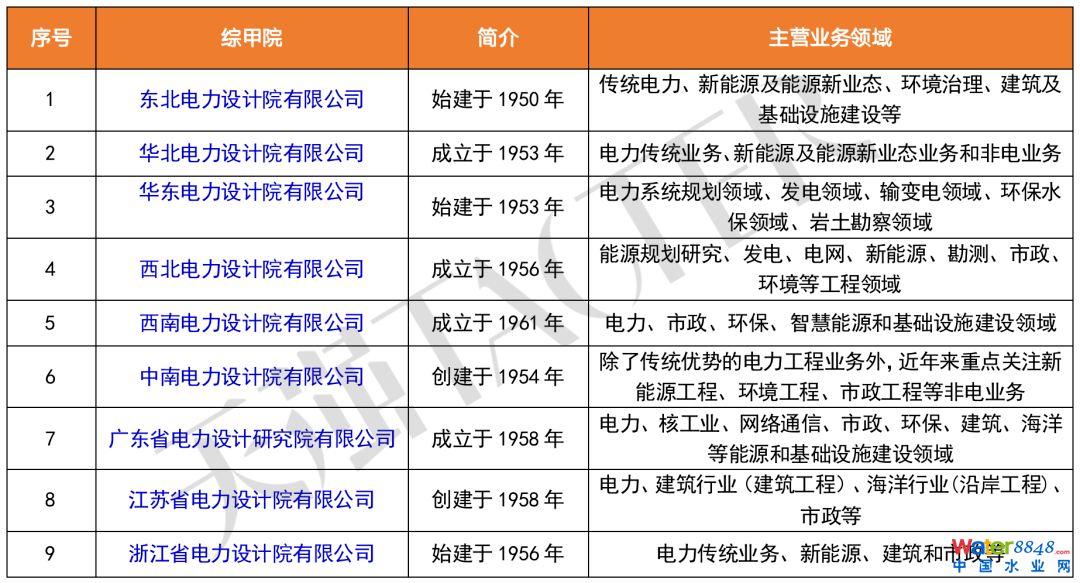 以下9家綜甲院均為中國能源建設(shè)集團(tuán)規(guī)劃設(shè)計(jì)有限公司的全資子公司。