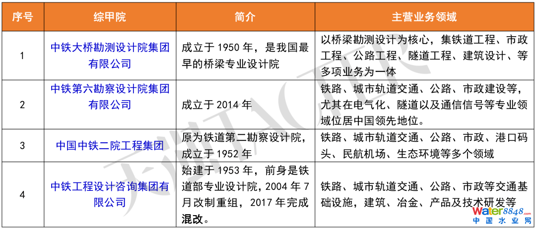 以下4家綜甲院均為中國鐵建股份有限公司的全資子公司。