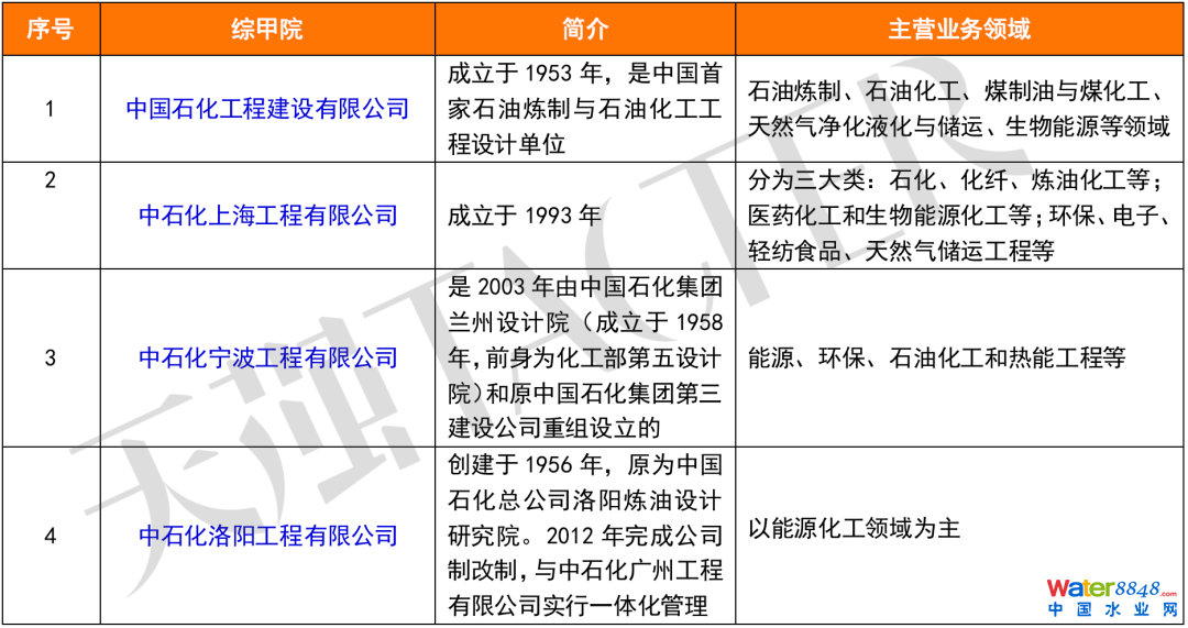 以下6家綜甲院,前4家為中國化學(xué)工程股份有限公司的全資子公司,后2家為中國化學(xué)工程股份有限公司的控股子公司。