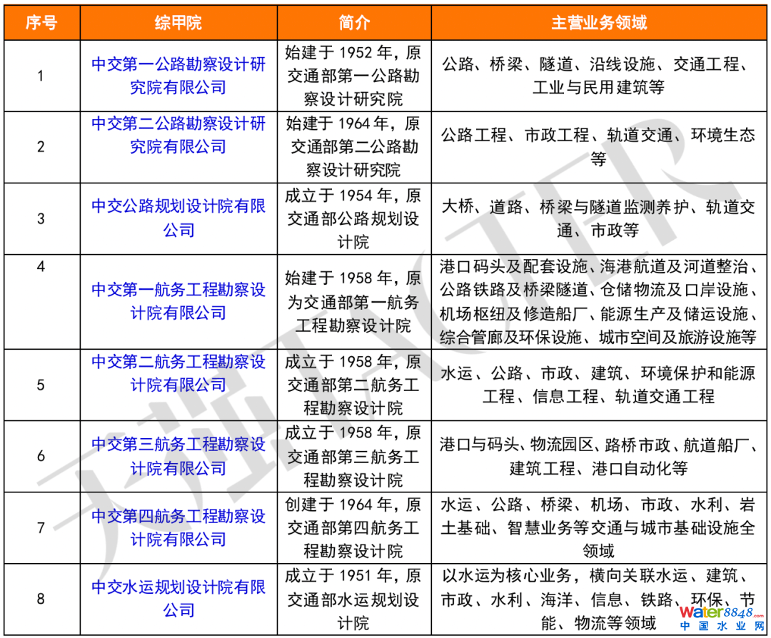 以下8家綜甲院均為中國交通建設(shè)股份有限公司的全資子公司。