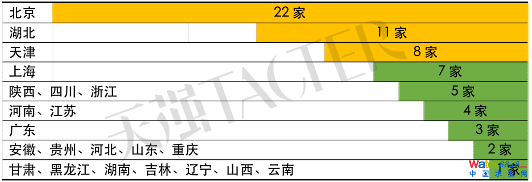 從區(qū)域分布來看,注冊地在北京的“綜甲院”最多(22家),其次是湖北(11家),再次是天津(8家)。