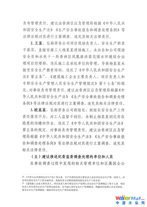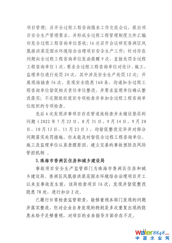 近日,珠海市香洲區(qū)應(yīng)急管理局發(fā)布《香洲區(qū)鳳凰排洪渠范圍水環(huán)境綜合治理項(xiàng)目“11·30”物體打擊事故調(diào)查報(bào)告》。