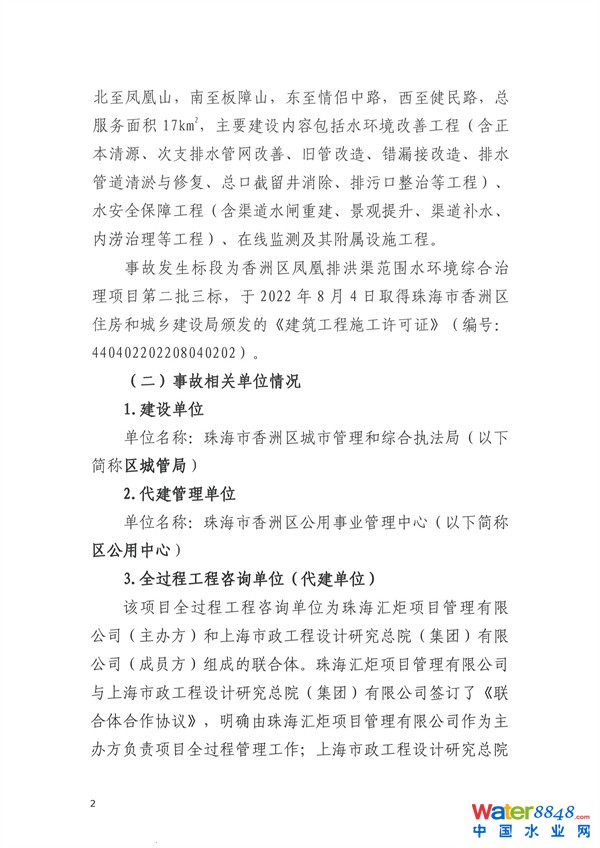 致1人死亡 珠海市香洲區(qū)鳳凰排洪渠范圍水環(huán)境綜合治理項(xiàng)目“11·30”物體打擊事故調(diào)查報(bào)告