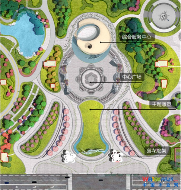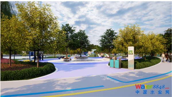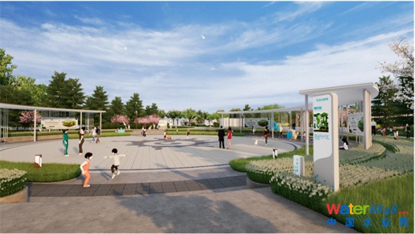 本工程將環(huán)境治理與城市公園建設融于一體,在解決周邊污水量爆發(fā)性增長問題的同時,打造多元、親民、生態(tài)的綜合公園,完善15分鐘社區(qū)生活圈。本次景觀方案以“綠愈水漾,悅動生活”為設計理念,以“回歸‘芯’活力,城市‘森’呼吸”為設計目標,形成 “一軸、三區(qū)、多節(jié)點”的景觀結(jié)構(gòu),打造環(huán)形跑步道,布局多處體育運動場地,結(jié)合地下污水處理廠概念打造環(huán)保科普園,融入多處景觀節(jié)點,將生態(tài)濕地、運動休閑、文化體驗、科普教育等功能綜合納入公園內(nèi),成功治愈地塊,讓水溶入生活,打造一座功能多元、景觀多樣的綜合性公園,為居民提供一處悅動、樂活的生活之所。