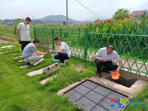 ▲工作人員對污水治理點(diǎn)的水質(zhì)進(jìn)行檢測