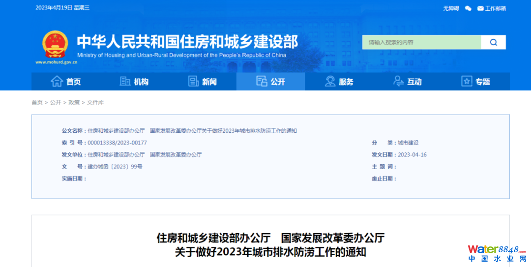 近日,住房和城鄉(xiāng)建設(shè)部、國家發(fā)展改革委發(fā)布關(guān)于做好2023年城市排水防澇工作的通知。