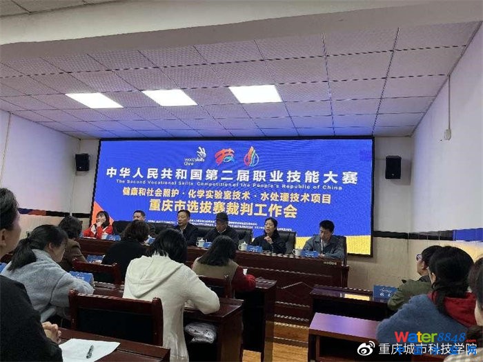 中華人民共和國第二屆職業(yè)技能大賽水處理技術(shù)項目重慶市選拔賽參賽隊伍由市政建環(huán)系孟靖華老師擔(dān)任領(lǐng)隊,左歡歡老師擔(dān)任領(lǐng)隊助理,黃濤老師以及王云川老師擔(dān)任比賽裁判,市政建環(huán)系學(xué)生邱春夢,孫婧鑫。4月1日,領(lǐng)隊帶領(lǐng)學(xué)生及裁判報道,裁判分別在上午進行了裁判培訓(xùn),強調(diào)了執(zhí)裁紀(jì)律和要求,下午召開了裁判會議,對執(zhí)裁細(xì)則進行了討論,選手在下午召開賽前動員會,而后進行了模擬比賽流程,讓選手熟悉流程以及比賽場地。