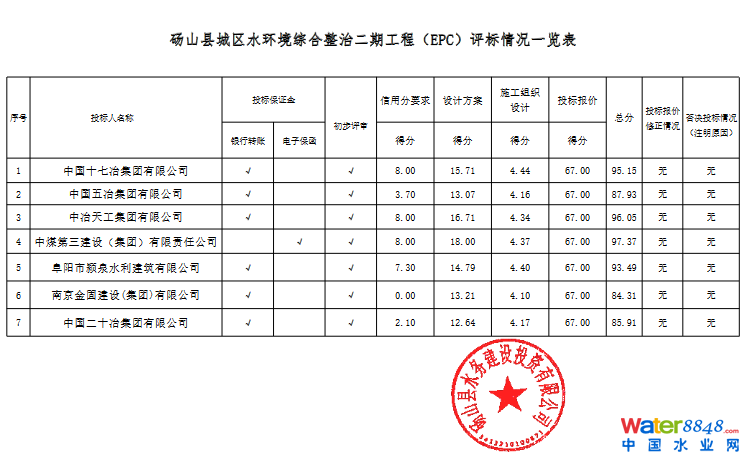 5月10日,宿州市公共資源交易中心發(fā)布碭山縣城區(qū)水環(huán)境綜合整治二期工程(EPC)中標候選人公示,第一中標候選人為中煤第三建設(shè)(集團)有限責(zé)任公司、青島市市政工程設(shè)計研究院有限責(zé)任公司、安徽展云建設(shè)有限公司聯(lián)合體。