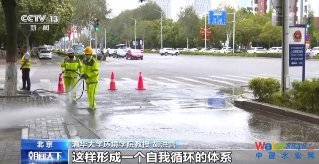 清華大學環(huán)境學院教授 胡洪營:再生水處理之后先用到生態(tài)環(huán)境,作為生態(tài)補水,解決生態(tài)用水的問題。同時生態(tài)水體又作為水源再供其他的用水,比方說工業(yè)用水,城市雜用等等,形成一個自我循環(huán)的體系,這樣就解決了缺水的問題。