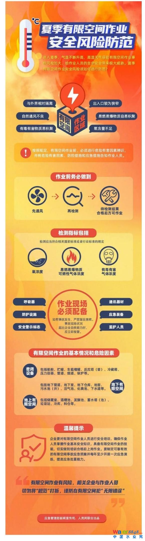 進(jìn)入夏季,氣溫不斷升高,高溫天氣導(dǎo)致有限空間作業(yè)事故風(fēng)險加大,各類有毒有害氣體容易蒸發(fā)聚集,給作業(yè)人員的生命安全帶來極大威脅!