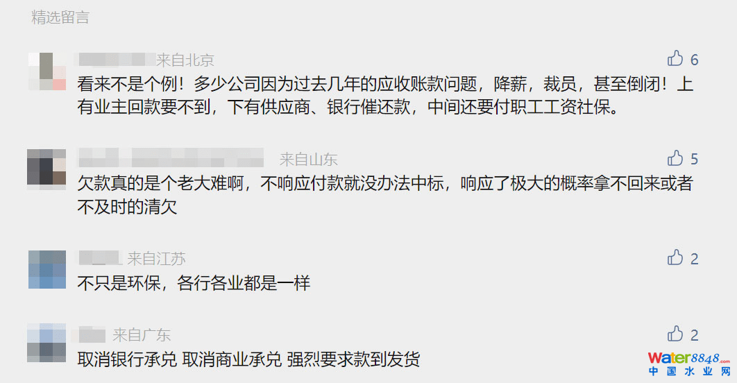 ▼“環(huán)保圈”讀者關于應收賬款問題的評論