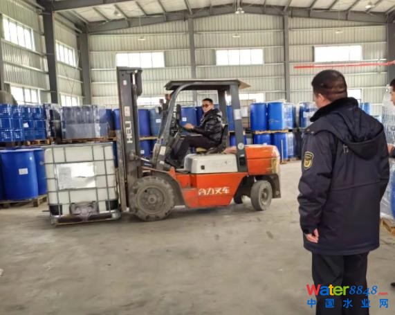 經(jīng)現(xiàn)場(chǎng)勘查,該公司新建的二期項(xiàng)目主要生產(chǎn)防水劑和十八酯,生產(chǎn)原料中使用了含銅催化劑。在生產(chǎn)車間,13個(gè)生產(chǎn)設(shè)備釜擺放在內(nèi),企業(yè)沒有建設(shè)污水處理池,生產(chǎn)廢水僅僅用水泵收集到廢水罐中,部分生產(chǎn)廢水被存放在噸桶內(nèi),并運(yùn)送至二期倉(cāng)庫(kù)內(nèi)。廠區(qū)內(nèi)的消防應(yīng)急水池水位也有明顯下降。