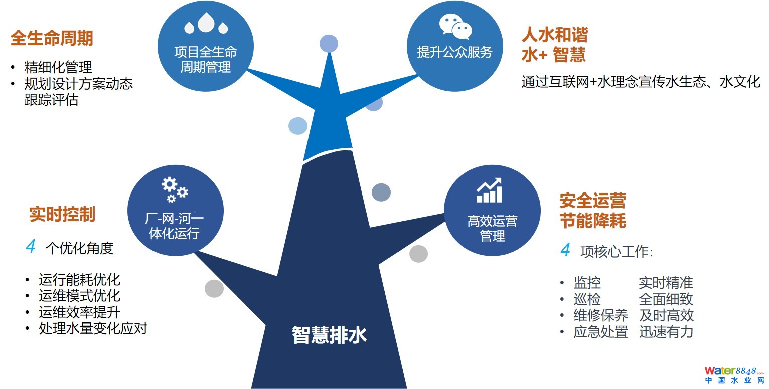 2021年發(fā)布的《室外排水設(shè)計標(biāo)準(zhǔn)》(GB 50014-2021),明確建設(shè)智慧排水系統(tǒng),實現(xiàn)整個城鎮(zhèn)或區(qū)域排水工程大數(shù)據(jù)管理、互聯(lián)網(wǎng)應(yīng)用、移動終端應(yīng)用、地理信息查詢、決策咨詢、設(shè)備監(jiān)控、應(yīng)急預(yù)警和信息發(fā)布功能。2020年,國家發(fā)展改造委 住房城鄉(xiāng)建設(shè)部關(guān)于印發(fā)《城鎮(zhèn)生活污水處理設(shè)施補(bǔ)短板強(qiáng)弱項實施方案》的通知:明確逐步實現(xiàn)遠(yuǎn)程監(jiān)控、信息采集、系統(tǒng)智能調(diào)度、事故智慧預(yù)警等功能;并且需要積極推廣“廠網(wǎng)一體化”,落實建設(shè)管養(yǎng)實施主體,建立常態(tài)化建設(shè)管養(yǎng)機(jī)制。