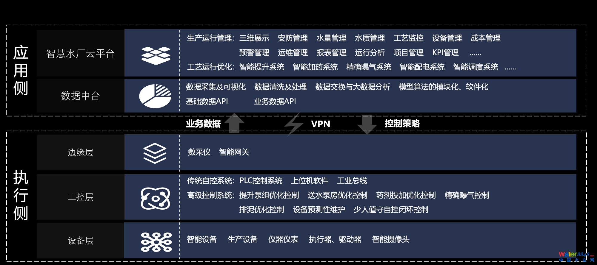 德國(guó)水工業(yè)協(xié)會(huì)的《Water 4.0》認(rèn)為水行業(yè)和工業(yè)4.0一樣也進(jìn)入了水4.0時(shí)代,具有相同的發(fā)展需求和技術(shù)應(yīng)用,并明確提出了現(xiàn)階段智慧水務(wù)建設(shè)的核心內(nèi)容是數(shù)字化和智能化。