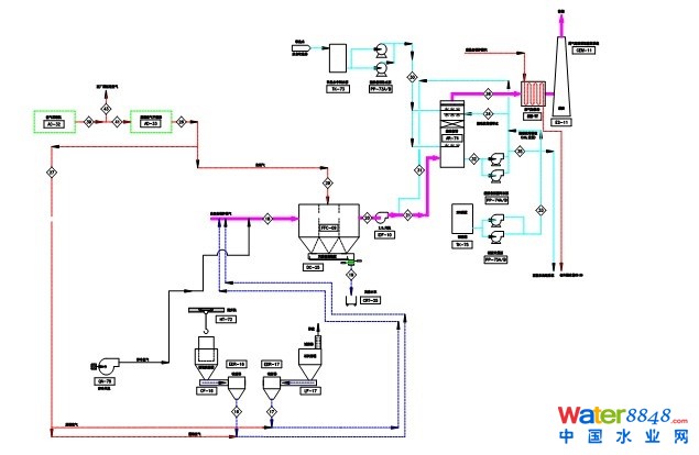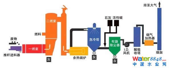 煙氣凈化工藝:急冷塔+干法脫酸+布袋除塵+酸吸收塔工藝。煙氣余熱采用蒸汽鍋爐回收利用。該工藝具有以下特點(diǎn):