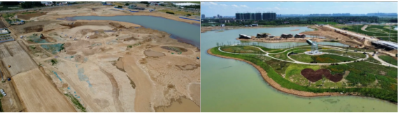 圖2 蘇大堰濕地公園種子塔花海項(xiàng)目建設(shè)前后對比