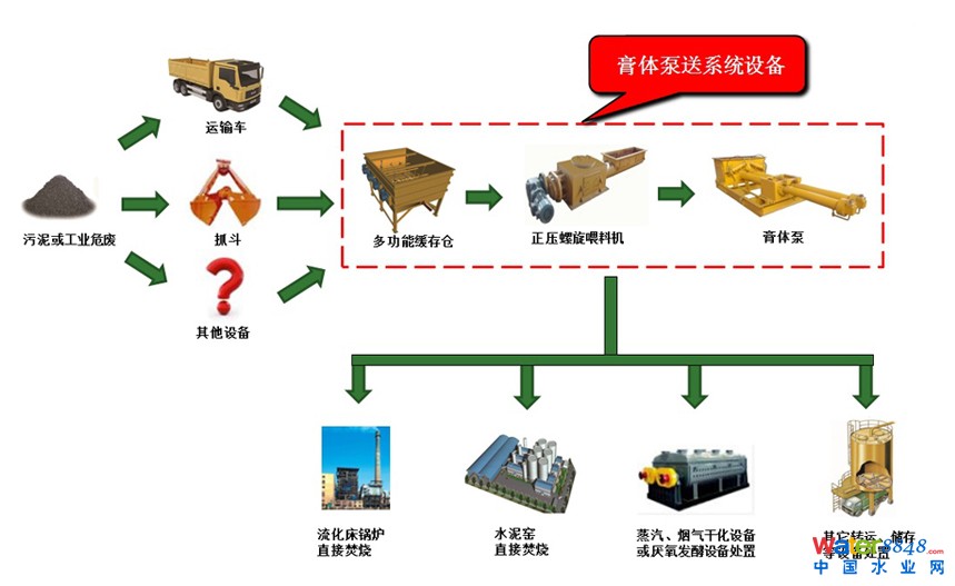 污水處理廠、造紙廠、PVC廠、印染廠等企業(yè)每年都會(huì)都會(huì)產(chǎn)生大量的市政污泥、造紙污泥、電石泥、印染污泥等粘稠固體廢棄物,通過車輛或其他設(shè)備運(yùn)送至處置現(xiàn)場(chǎng),經(jīng)緩存、輸送等工藝環(huán)節(jié)被直接送入現(xiàn)有的設(shè)施終端進(jìn)行處置(直接焚燒、干化或轉(zhuǎn)運(yùn)儲(chǔ)存)。