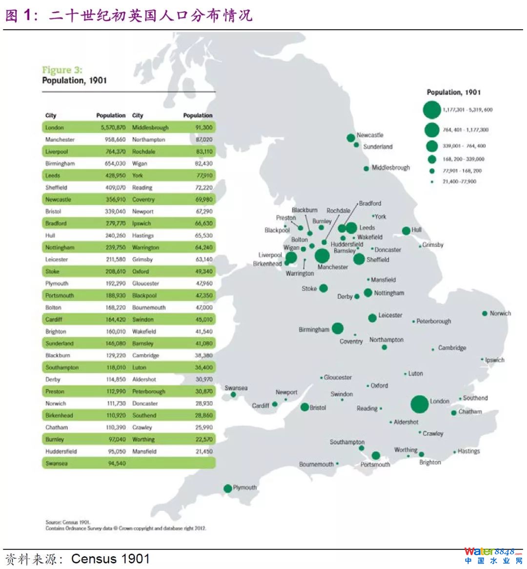 供水方面:供水組織架構(gòu)繁雜,供水效率低下。19世紀(jì)的工業(yè)革命帶動(dòng)工業(yè)迅速發(fā)展,隨之而來(lái)的經(jīng)濟(jì)增長(zhǎng)推動(dòng)了人口的增長(zhǎng)和城鎮(zhèn)化水平的提升,這也進(jìn)一步帶來(lái)了用水需求的快速增長(zhǎng)。英國(guó)(注:下文中的英國(guó)表述除另有說(shuō)明外,均表示英格蘭和威爾士地區(qū),蘇格蘭和北愛(ài)爾蘭區(qū)域不在本文討論范圍內(nèi))作為全球率先開(kāi)啟工業(yè)革命的國(guó)家,其基礎(chǔ)設(shè)施建設(shè)的情況也處于歐洲領(lǐng)先地位:20世紀(jì)中葉,英國(guó)已經(jīng)能向大部分人口供應(yīng)自來(lái)水;到1944年,英格蘭70%的農(nóng)村家庭和近100%的城市家庭擁有自來(lái)水,實(shí)現(xiàn)了較高的覆蓋率。但與此同時(shí),英國(guó)整體的供水體系較為繁雜,當(dāng)時(shí)英國(guó)參與供水的組織分為三類(lèi):地方當(dāng)局、聯(lián)合(水)委員會(huì)、法定自來(lái)水公司,各自的組織架構(gòu)和分工情況差異化較大,且并沒(méi)有專(zhuān)門(mén)的管理協(xié)調(diào)機(jī)構(gòu),這使得不同組織間的合作和協(xié)調(diào)困難。