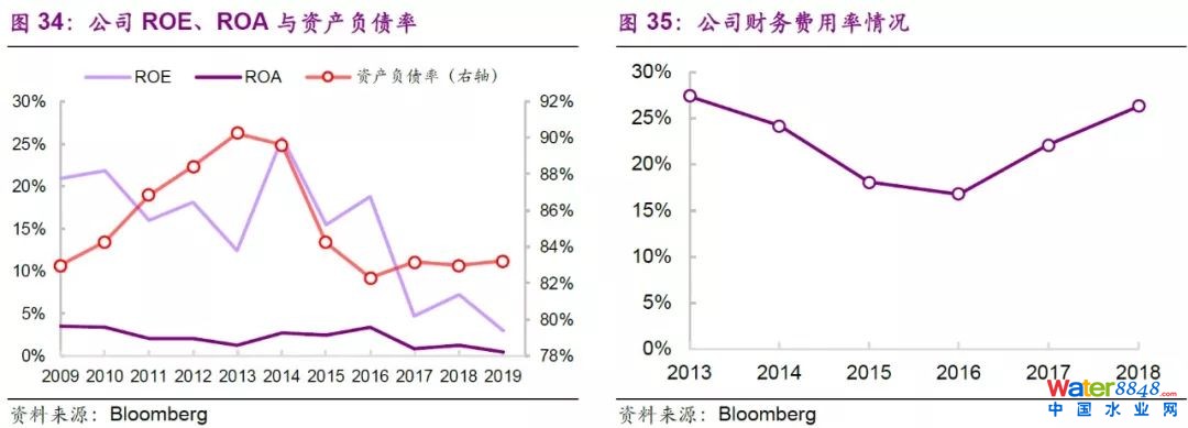 公司商業(yè)模式相對(duì)穩(wěn)定,近年來(lái)財(cái)務(wù)費(fèi)用率有所提升,資產(chǎn)負(fù)債率水平保持在80%左右且略有上升,主要系公司繼續(xù)加大舉債融資力度所致;但是考慮到公司融資渠道較多,且約一半的債務(wù)是固定利率,融資成本相對(duì)通貨膨脹仍處于較低水平。公司經(jīng)營(yíng)業(yè)績(jī)依然保持穩(wěn)定,融資多元化渠道增加,未來(lái)隨著水道管網(wǎng)等基礎(chǔ)設(shè)施建設(shè)完善后,公司ROE水平有望實(shí)現(xiàn)回升。