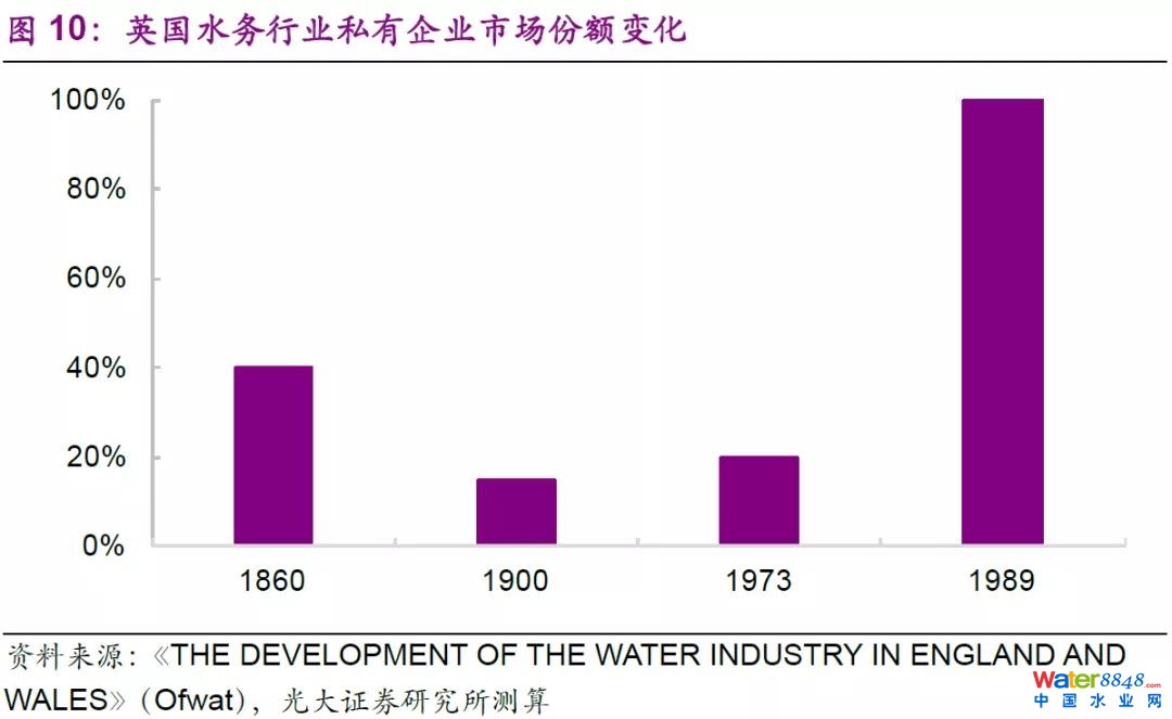1989年11月,英國(guó)政府出售了10家水務(wù)公司,完成了水務(wù)行業(yè)的私有化。