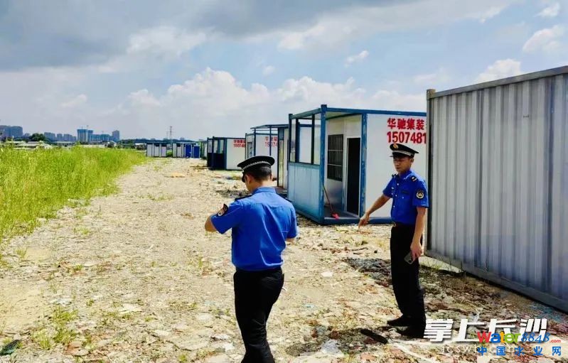 大片耕地被建筑固態(tài)垃圾填平,還建起集裝箱簡(jiǎn)易房,城管執(zhí)法人員及時(shí)保全證據(jù),控制損害。均為長(zhǎng)沙晚報(bào)通訊員 高文 供圖