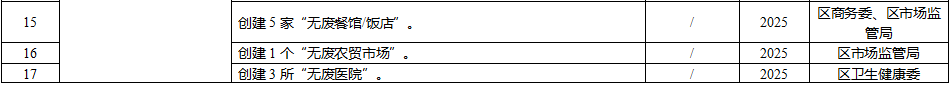 按照重慶市“無廢城市細胞”建設標準,在學校、小區(qū)、鄉(xiāng)村、機關事業(yè)單位、醫(yī)院、商場、飯店、快遞網(wǎng)點、園區(qū)、工廠、公園、景點等創(chuàng)建一批“無廢城市細胞”,營造“無廢城市”建設氛圍。充分發(fā)揮黨政機關、企事業(yè)單位的帶頭作用,以“無廢城市”建設領導小組成員單位為基礎,在區(qū)機關事務管理中心等區(qū)屬機關率先創(chuàng)建5個“無廢機關”;創(chuàng)建“無廢學校”8所;推進醫(yī)療廢物分類和醫(yī)療廢棄物管理,選擇3所固體廢物管理規(guī)范的醫(yī)院創(chuàng)建“無廢醫(yī)院”;選擇5家固體廢物管理規(guī)范、減量化資源化效果明顯的企業(yè)創(chuàng)建“無廢工廠”;持續(xù)推進生活垃圾分類,選擇5個生活垃圾分類工作基礎較好的小區(qū)創(chuàng)建“無廢小區(qū)”;基于“一村一品”示范村鎮(zhèn)建設,健全秸稈、農(nóng)藥包裝物、農(nóng)膜回收及利用體系,實現(xiàn)廚余垃圾、秸稈、畜禽糞污等有機廢棄物就近就地資源化利用,選擇4個工作基礎較好的村莊高標準推進“無廢鄉(xiāng)村”試點建設;在商業(yè)區(qū)域全面宣傳貫徹無廢理念,創(chuàng)建“無廢商圈”1個、“無廢餐館/飯店”5家;在城區(qū)創(chuàng)建“無廢公園”5個;推廣互聯(lián)網(wǎng)數(shù)字化場景應用,減少塑料包裝袋及紙質票據(jù)使用,在雙桂湖國家濕地公園、百里竹海等熱門景點開展“無廢景區(qū)”創(chuàng)建,選擇3個條件較好的景點創(chuàng)建“無廢景區(qū)”;選擇快遞包裝標準化、綠色化、循環(huán)化水平較高的4個網(wǎng)點創(chuàng)建“無廢快遞驛站”。到2025年底,累計創(chuàng)建梁平區(qū)“無廢細胞”60個。