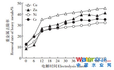 4 結(jié)論(1)隨著電解時間的延長,電動技術(shù)對剩余污泥中重金屬去除率均逐漸增大,最適電解時間為12 h。