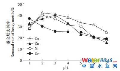 圖 3 介質(zhì)pH對剩余污泥中重金屬去除率的影響Figure 3 Effect of medium pH on the removal rate of heavy metals in residual sludge |