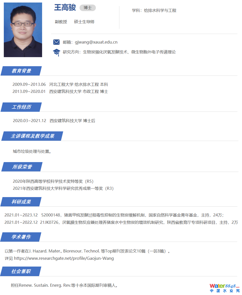 核心提示:王高駿 西安建筑科技大學(xué)環(huán)境與市政工程學(xué)院 副教授