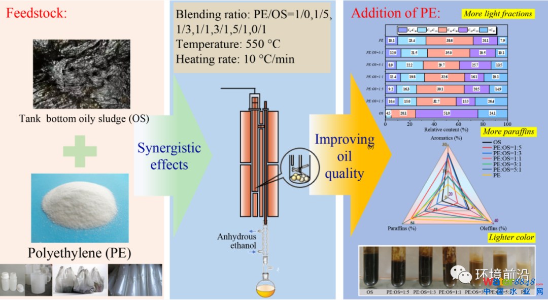 本研究采用對含有重餾分的油泥和聚乙烯混合調(diào)節(jié)H/C比進行共熱解的方法,考察聚乙烯添加對油泥熱解的影響。結(jié)果表明,聚乙烯可與油泥相互作用,促進油泥中輕組分的熱解,同時參與重組分的降解。聚乙烯添加還可促進油泥熱解高附加值氣態(tài)產(chǎn)品的獲取,并可減少污染物的釋放。該方法顯著改善了油泥的熱解過程并為油泥的清潔處理提供了一個新的方向。