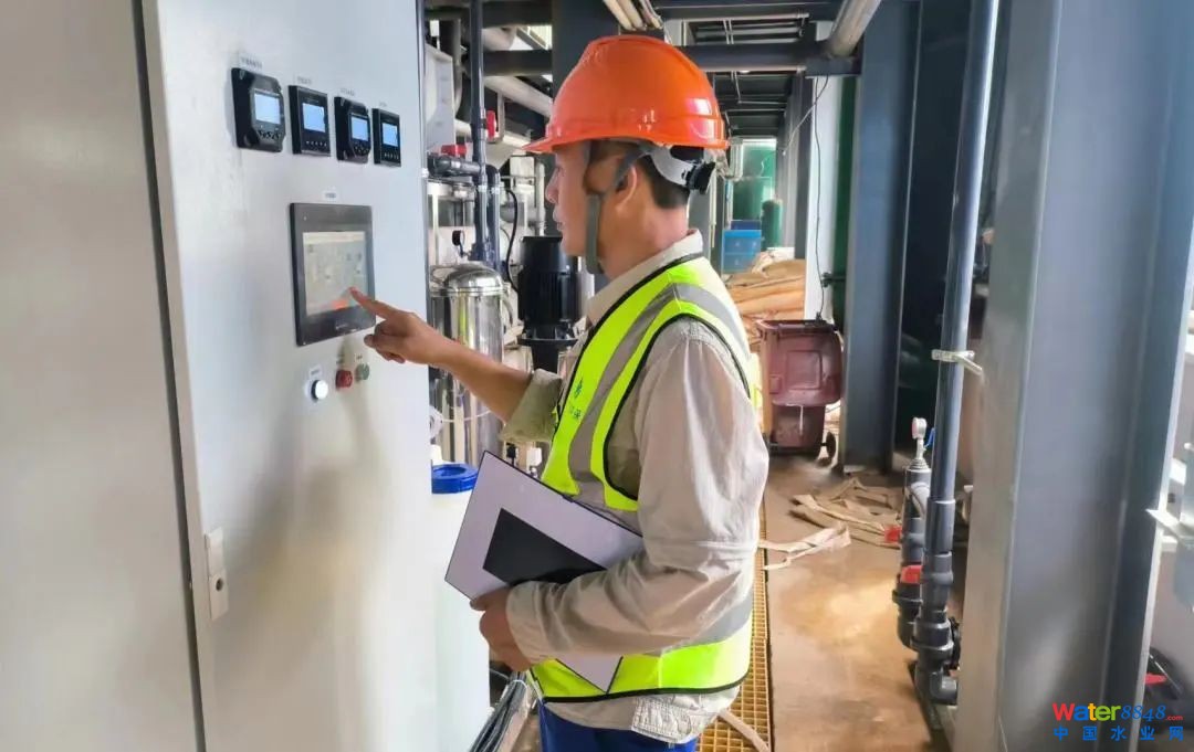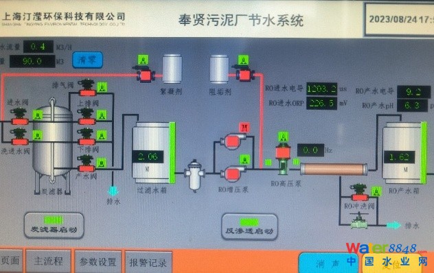 項(xiàng)目采用“活性炭過(guò)濾器+反滲透”主體工藝,水質(zhì)儀表在線監(jiān)控,系統(tǒng)全自動(dòng)運(yùn)行;赜盟到y(tǒng)產(chǎn)生的廢水可再次利用,用于污泥調(diào)理,有效避免系統(tǒng)廢水的二次污染。