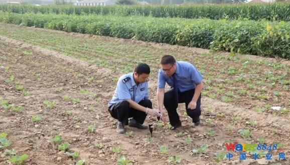 檢察官同技術(shù)部門(mén)干警用技術(shù)手段勘察恢復(fù)后的田地現(xiàn)場(chǎng)。